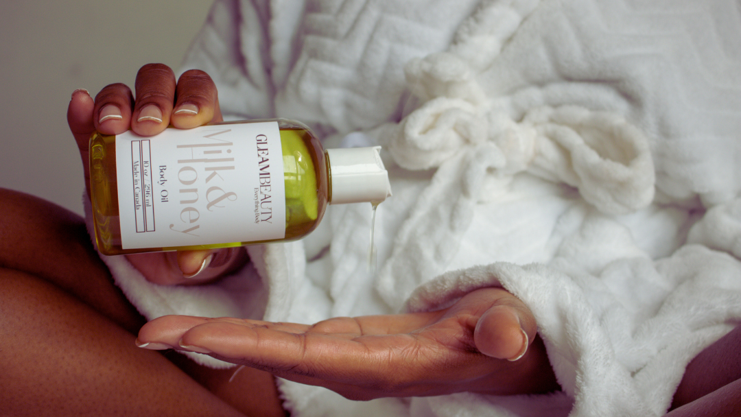 Gleam Beauty began with a problem—my son’s eczema and the harsh steroid creams that offered no lasting relief. So I took an online course, learned to formulate, and created what would become our first hero: Liquid Gold.